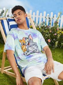 TOM & JERRY X SHEIN Men Cartoon Graphic Tie Dye Tee