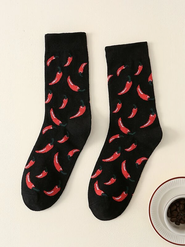 Men Chili Pattern Crew Socks