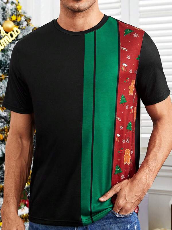Manfinity Homme Men Christmas Print Colorblock Tee