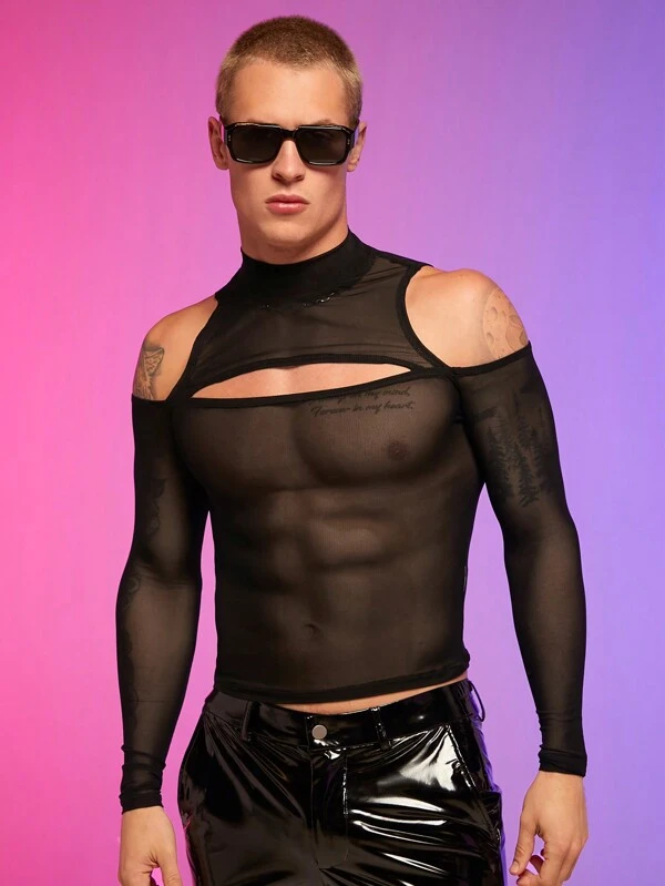 Manfinity Fever City Men Cold Shoulder Cut Out Mesh Tee