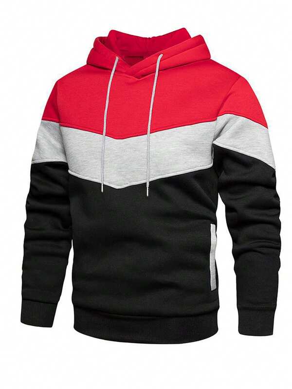 NITAGUT Men Color Block Drawstring Hoodie
