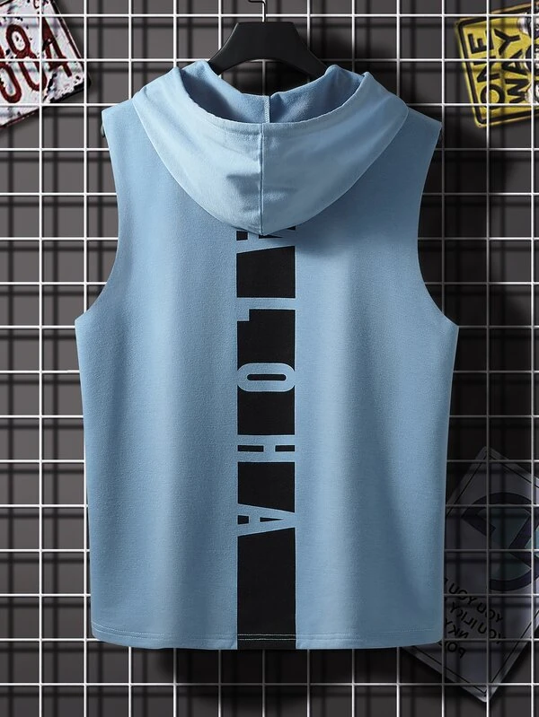 Manfinity Hypemode Men Color Block Letter Graphic Drawstring Hooded Tank Top