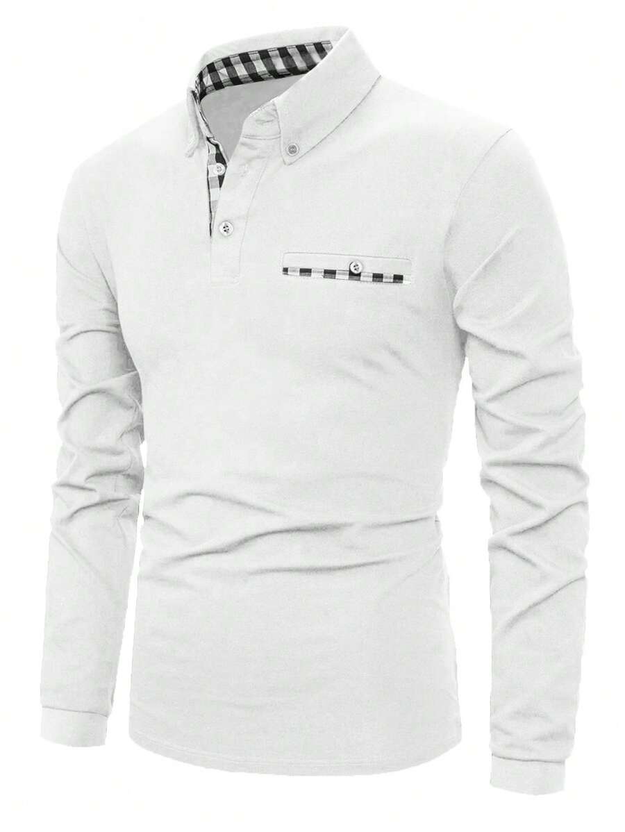 Men Contrast Gingham Trim Polo Shirt
