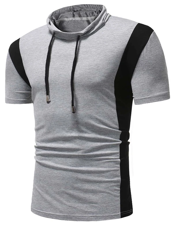 Men Contrast Panel Drawstring Tee