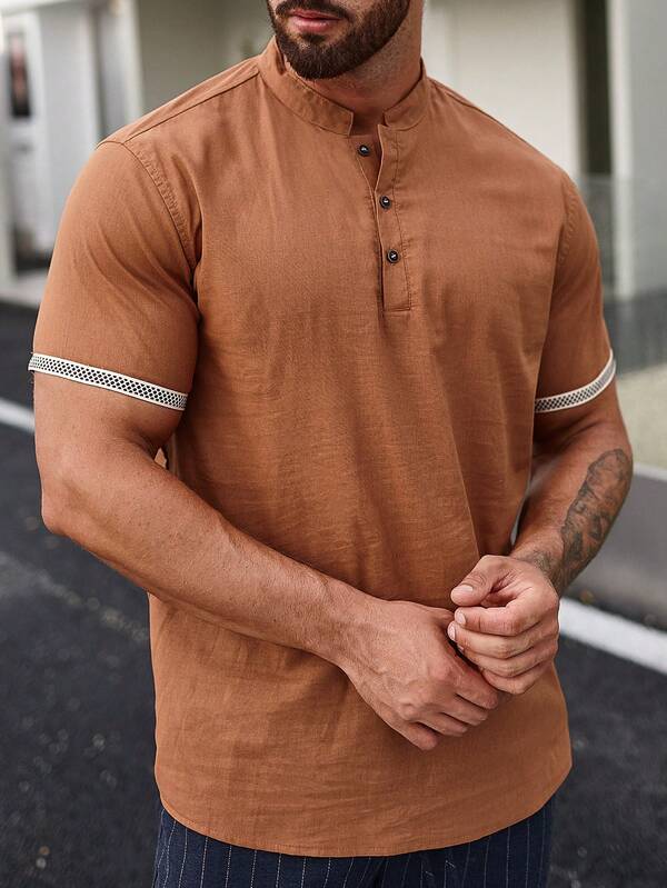 Manfinity Men Contrast Trim Quarter Button Shirt