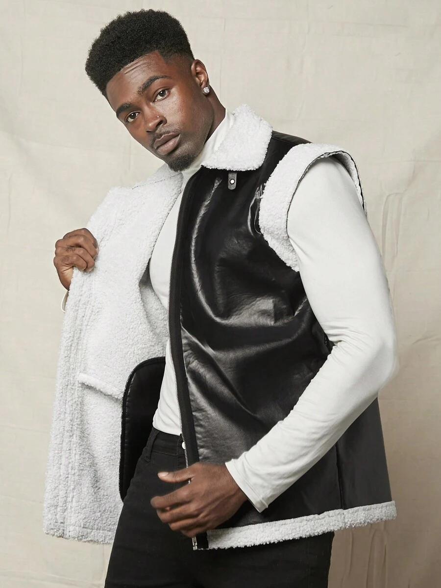 Manfinity Homme Men Contrast Trim Teddy Lined Leather Look Vest Coat