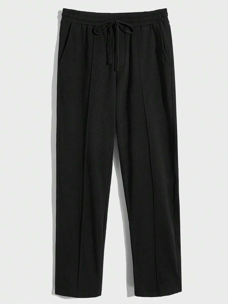 Manfinity Basics Men Cotton Drawstring Waist Seam Front Sweatpants