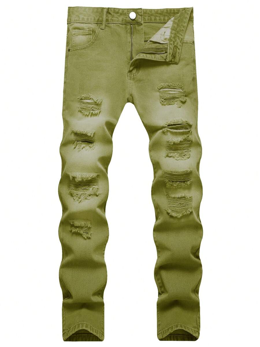 Men Cotton Ripped Slim Straight Jeans