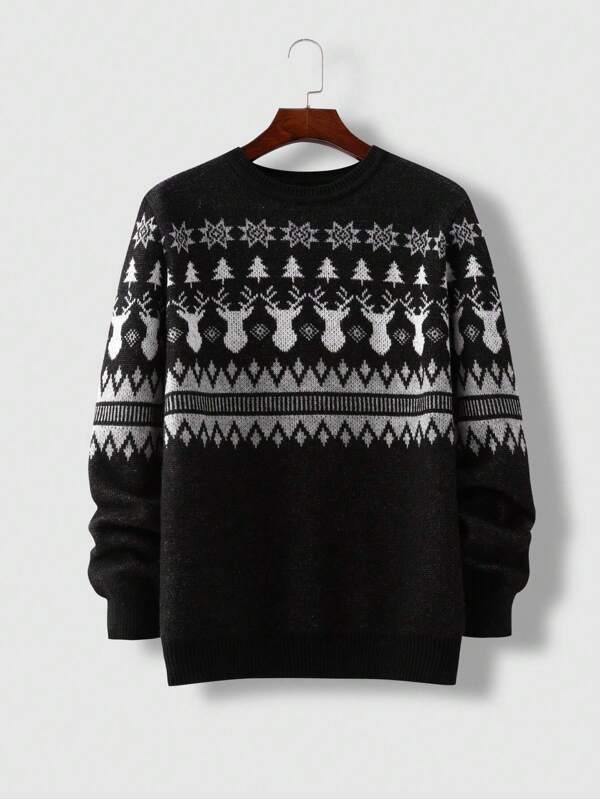 Men Deer & Geo Pattern Sweater