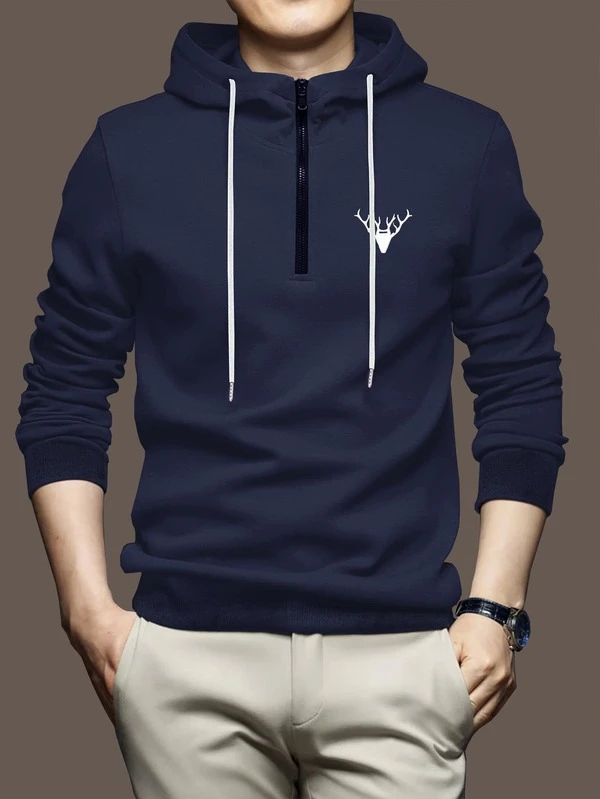 Manfinity Homme Men Deer Embroidery Quarter Zipper Drawstring Hoodie