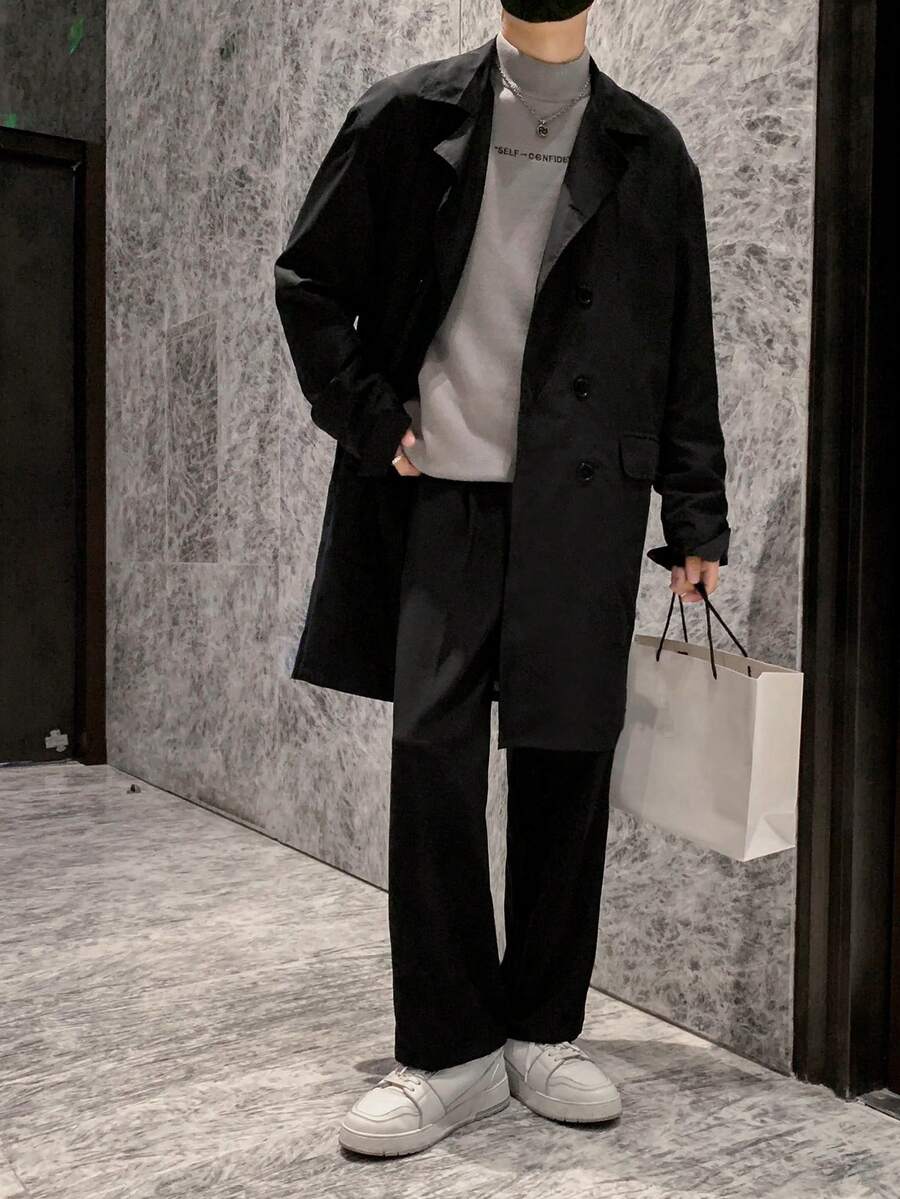 Manfinity Hypemode Men Double Breasted Drop Shoulder Trench Coat