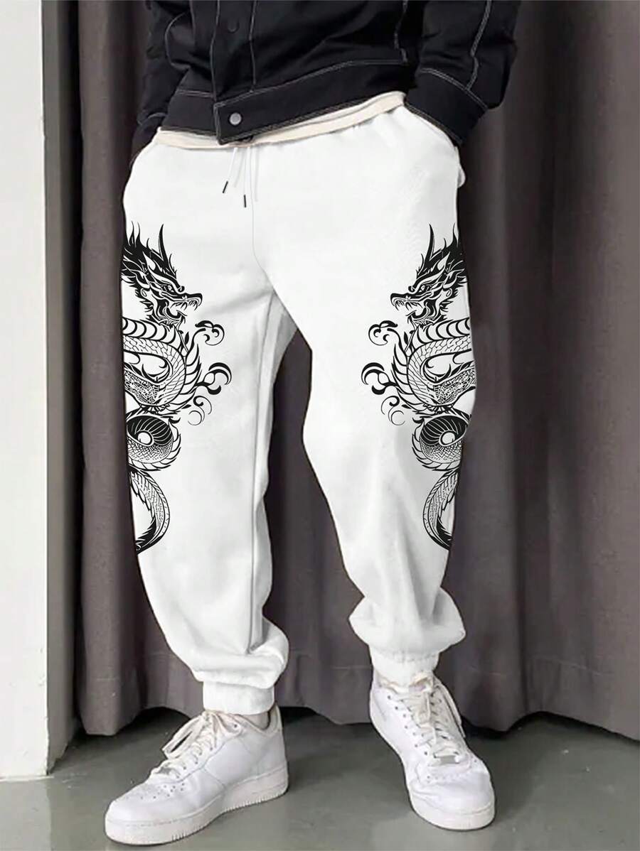 Manfinity EMRG Men Dragon Graphic Drawstring Waist Sweatpants