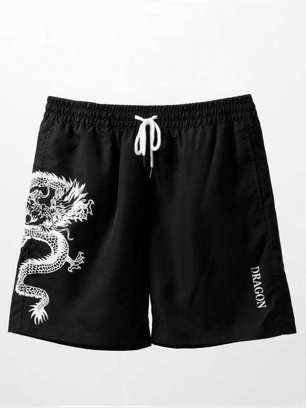 Manfinity Men Dragon Print Drawstring Waist Swim Trunks