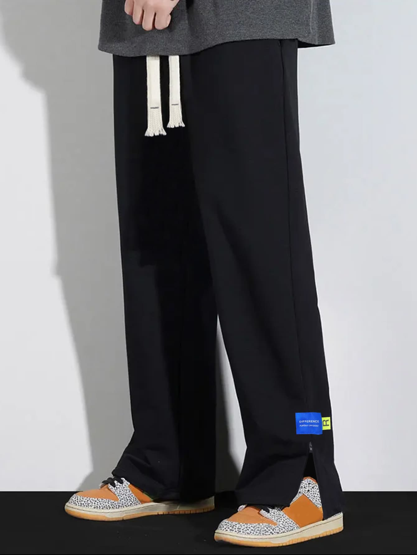 Manfinity Hypemode Men Drawstring Waist Patch Detail Zip Hem Sweatpants