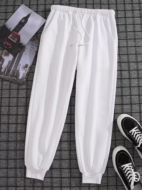 Men Drawstring Waist Thermal Lined Sweatpants