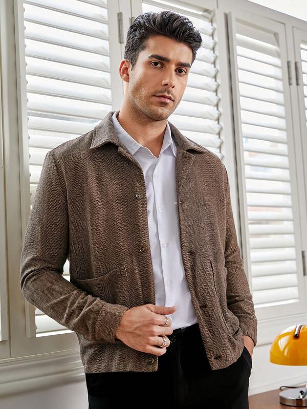 Manfinity Homme Men Dual Pocket Button Front Overcoat