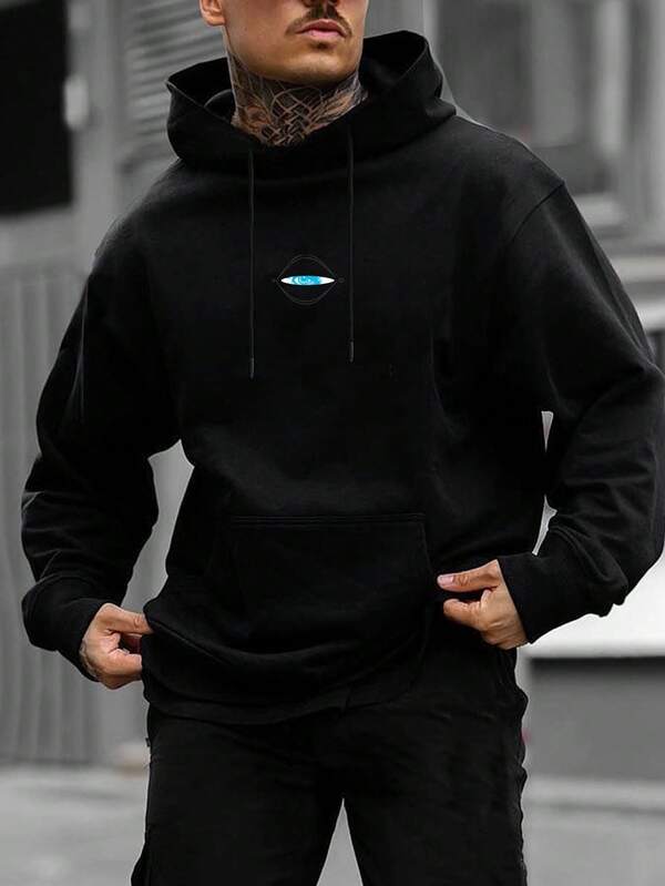 Manfinity Homme Men Eye Print Kangaroo Pocket Drawstring Hoodie