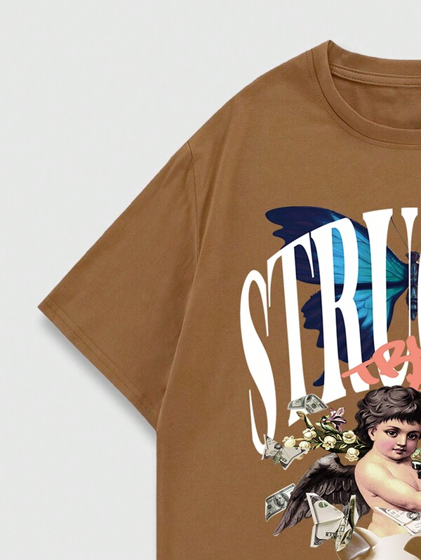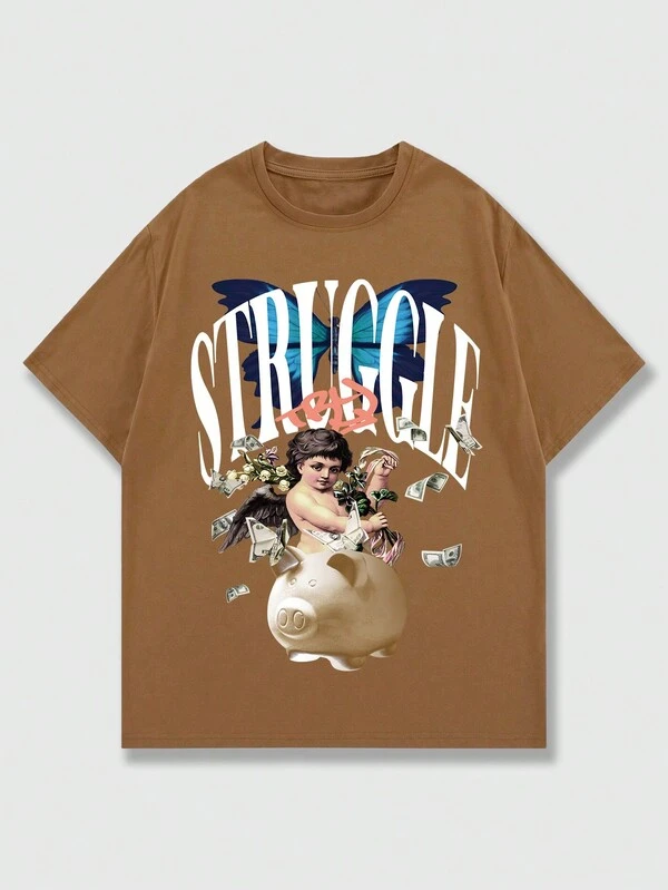 ROMWE Street Life Men Figure & Letter Graphic Tee