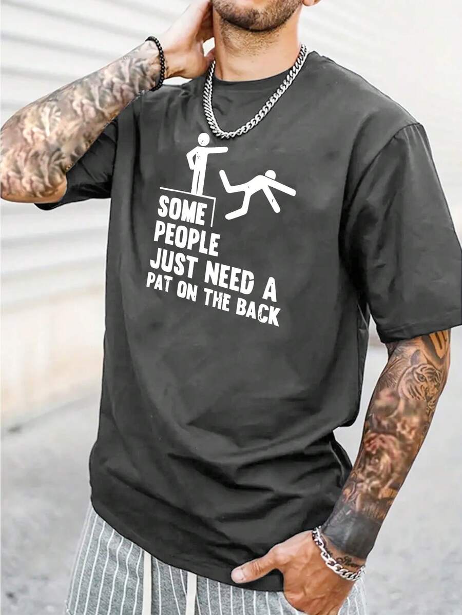 Men Figure & Slogan Graphic Tee