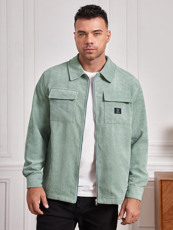 Manfinity Homme Men Flap Pocket Corduroy Coat