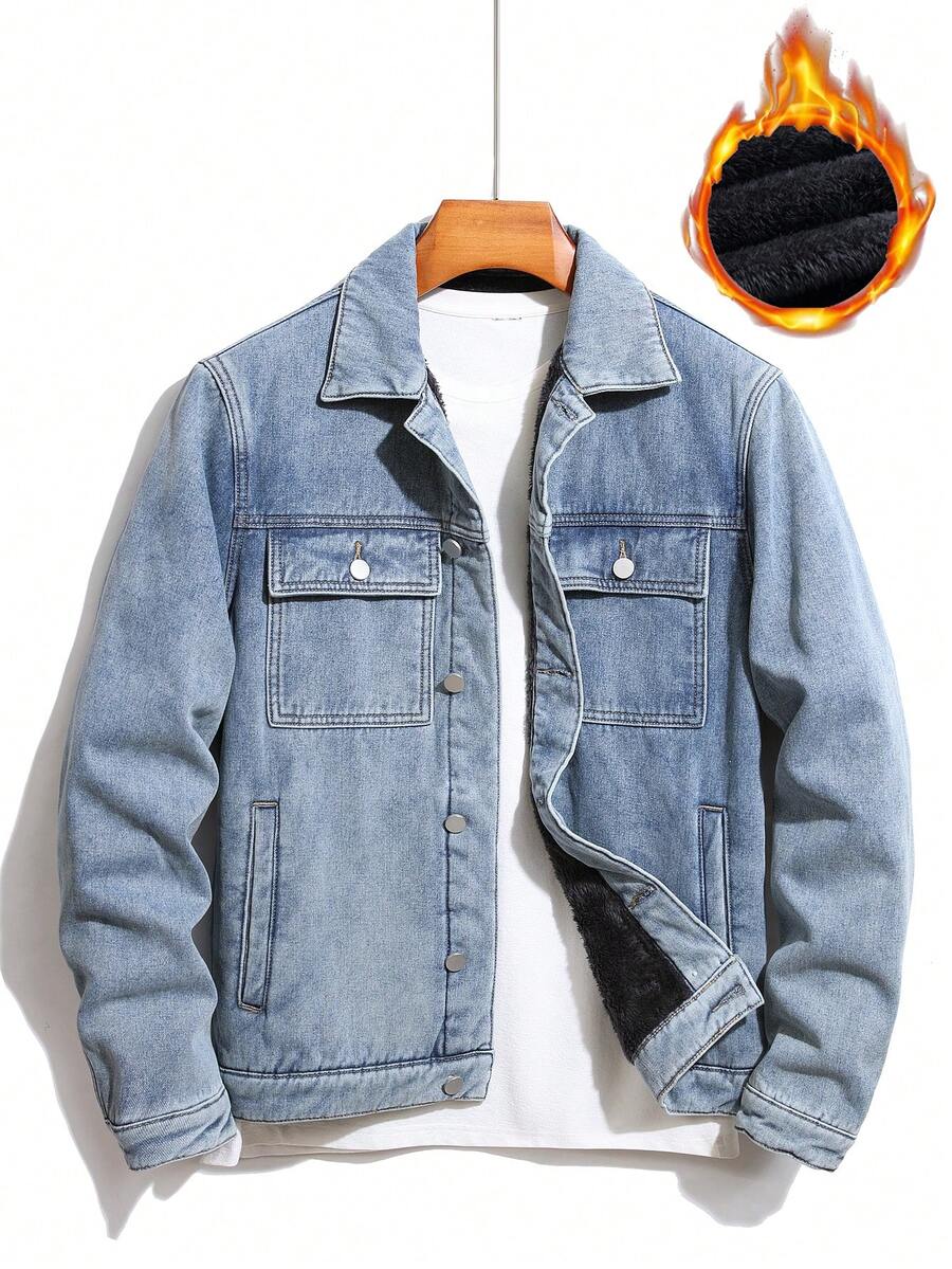 Manfinity Men Flap Pocket Denim Jacket Without Tee