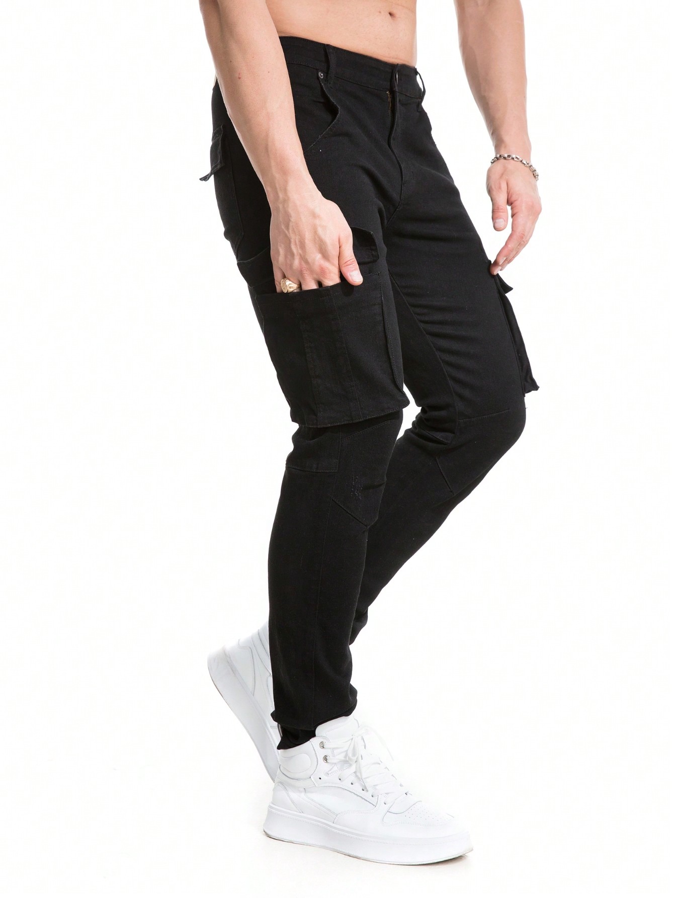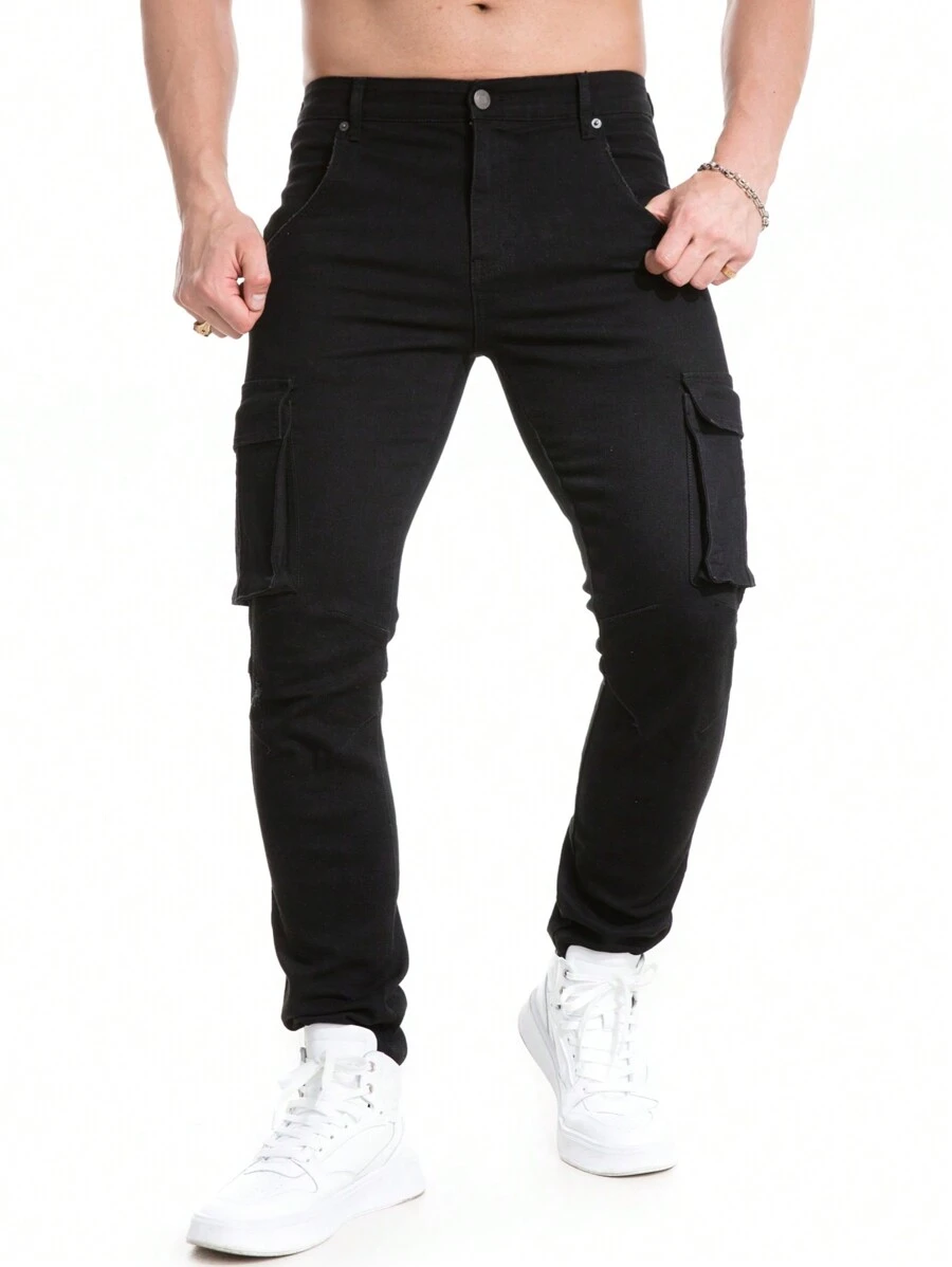 Men Flap Pocket Side Cargo Jeans
