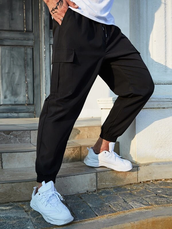 Manfinity Homme Men Flap Pocket Side Drawstring Waist Cargo Pants