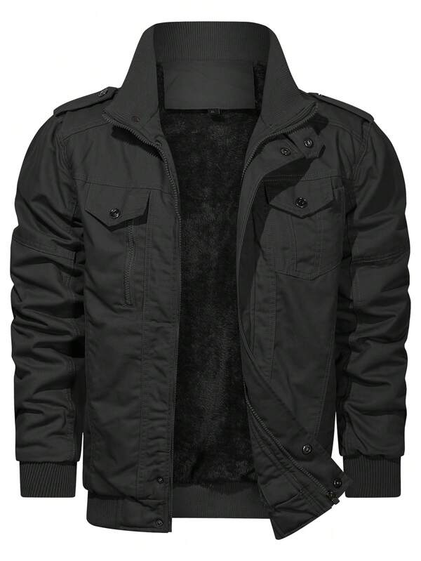 Manfinity Homme Men Flap Pocket Teddy Lined Winter Coat