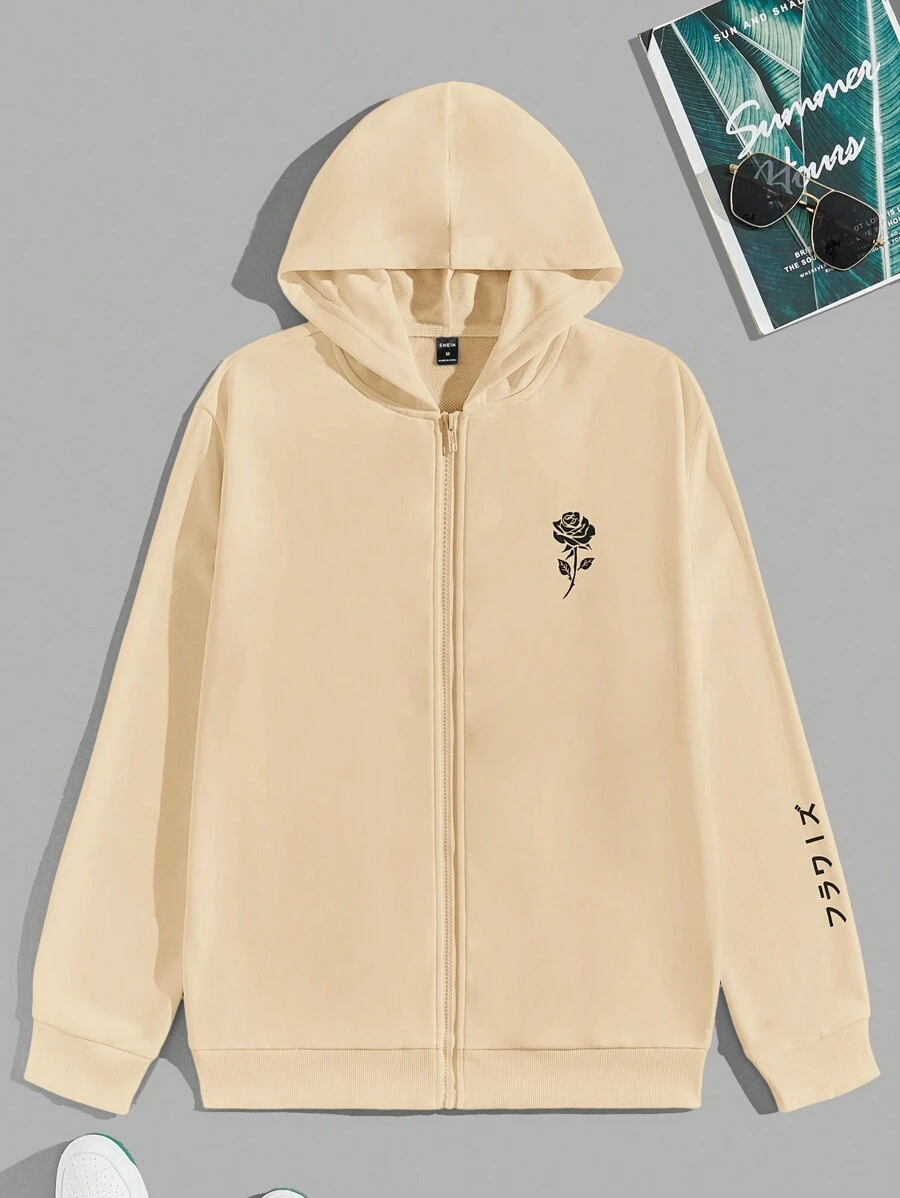 Manfinity Homme Men Floral & Letter Graphic Zip Up Hoodie