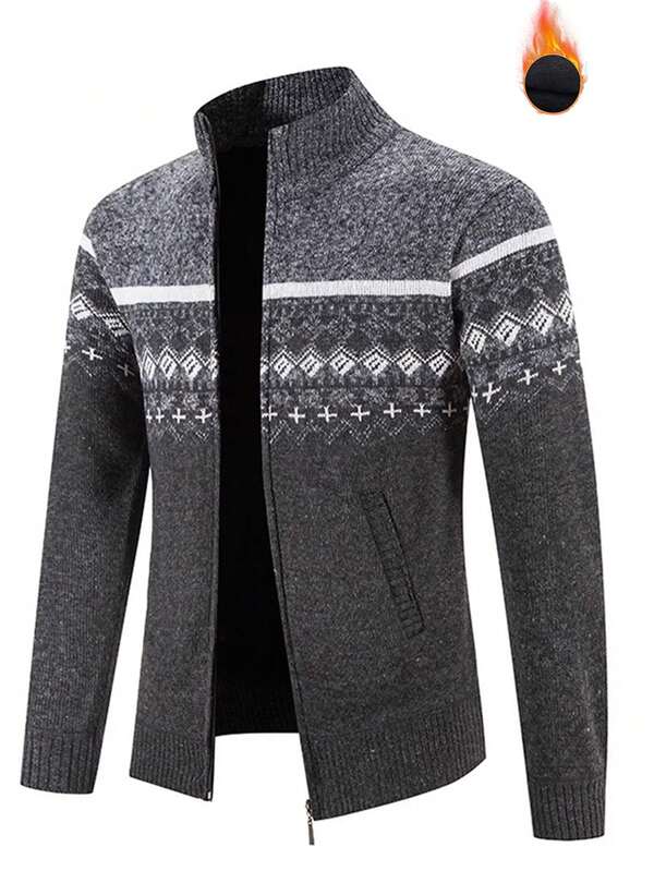 Men Geo Pattern Zip Up Cardigan
