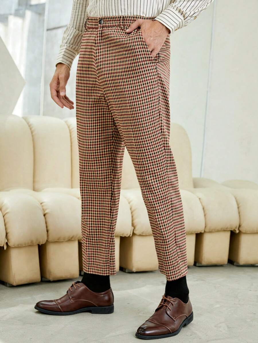 Manfinity Mode Men Gingham Print Slant Pocket Suit Pants