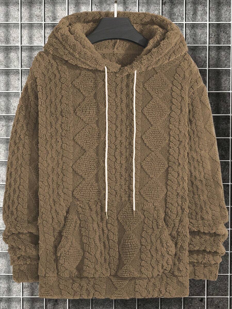 Manfinity Hypemode Men Kangaroo Pocket Drawstring Fuzzy Hoodie