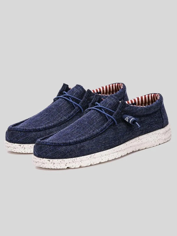 Men Lace-up Front Boat Shoes, Blue Solid Color Boat Shoes