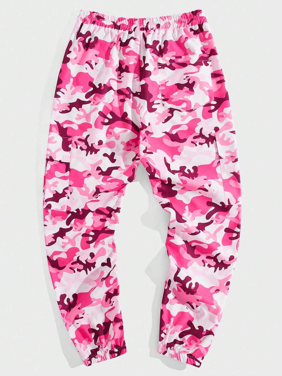 ROMWE Street Life Men Letter & Camo Print Drawstring Waist Pants