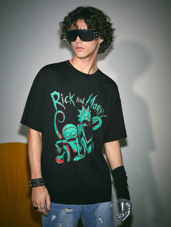 Rick and Morty | ROMWE Men Letter & Cartoon Graphic Tee