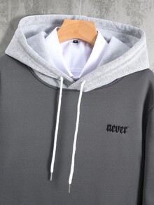 Manfinity Hypemode Men Letter Embroidery Colorblock Drawstring Hoodie Without Shirt