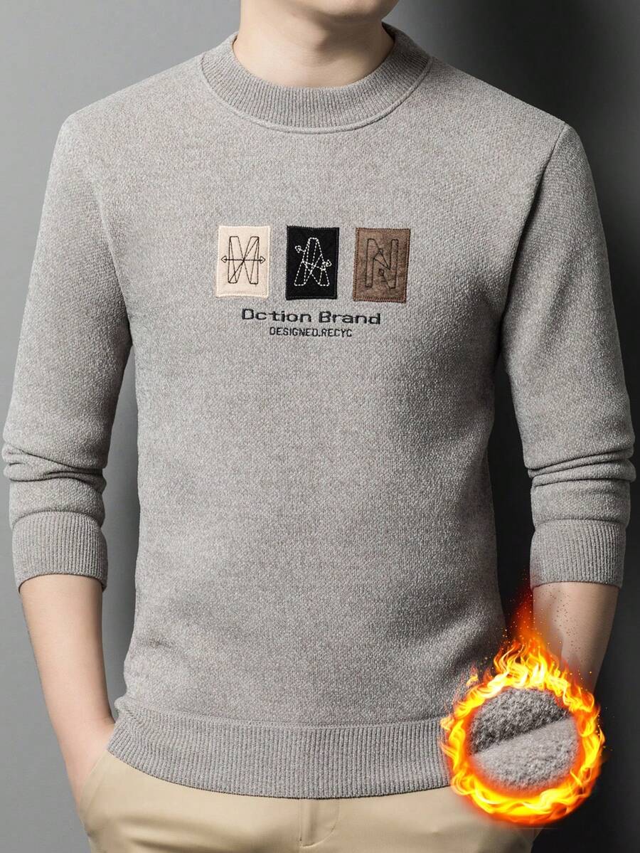 Men Letter Embroidery Thermal Lined Sweater