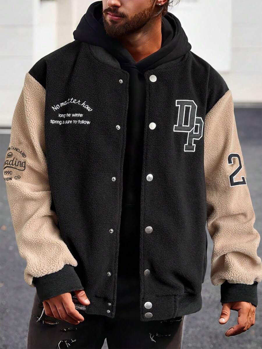 Manfinity Homme Men Letter Graphic Colorblock Drop Shoulder Bomber Jacket Without Tee