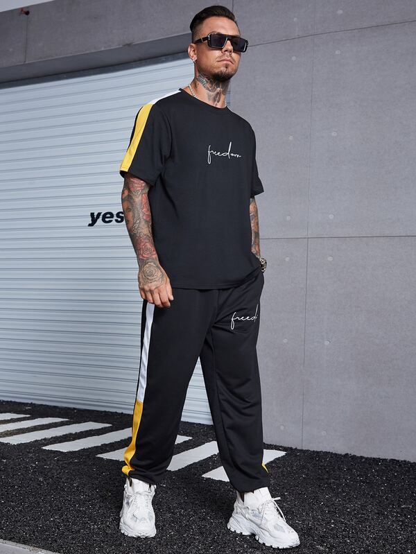 Manfinity Men Letter Graphic Contrast Side Seam Tee & Pants