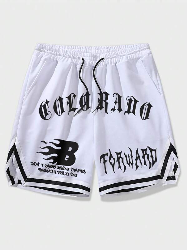 ROMWE Street Life Men Letter Graphic Contrast Trim Drawstring Waist Shorts