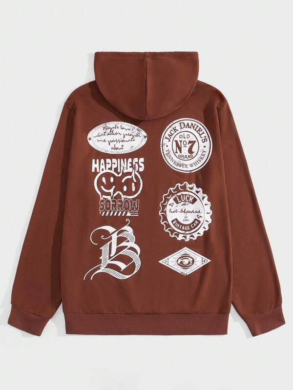 ROMWE Street Life Men Letter Graphic Drawstring Hoodie