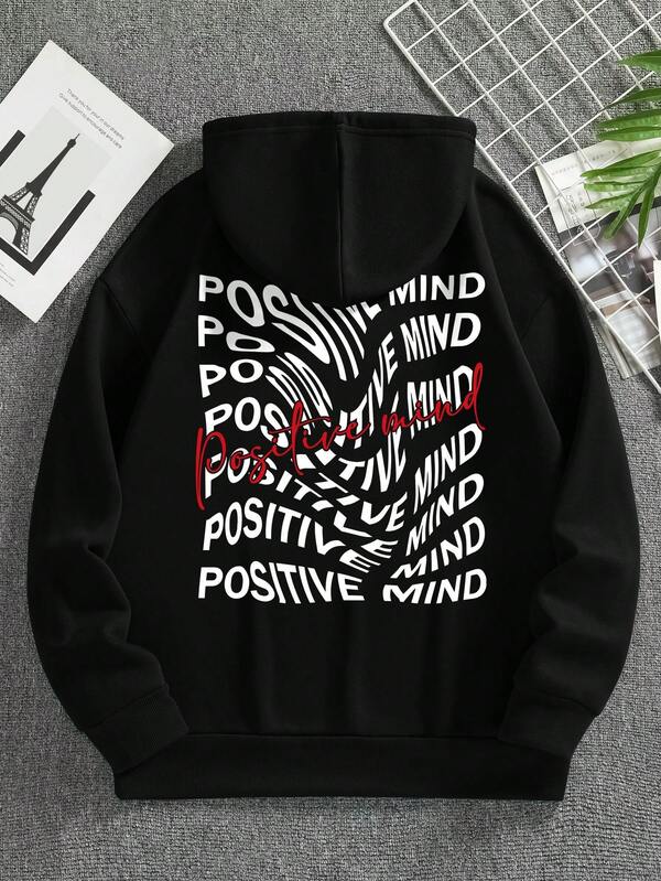 Men Letter Graphic Drawstring Thermal Lined Hoodie