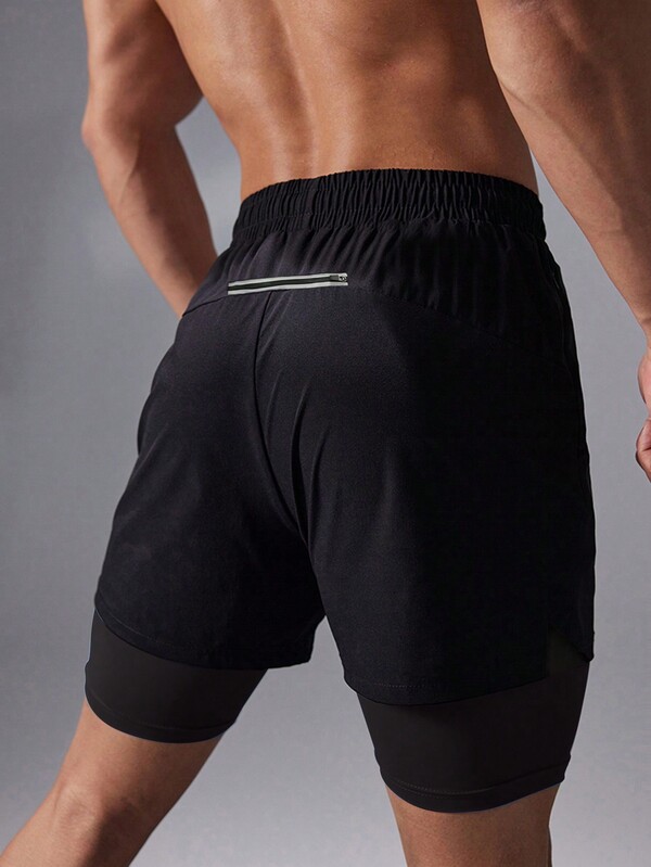 SHEIN Running Men Letter Graphic Drawstring Waist Sports Shorts With Compression Liner