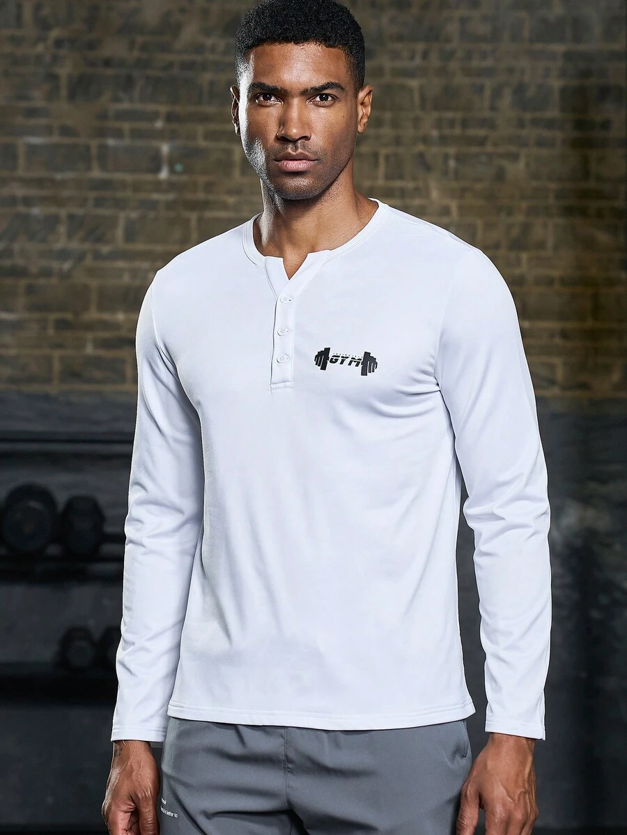 Men Letter Graphic Half Button Sports Tee