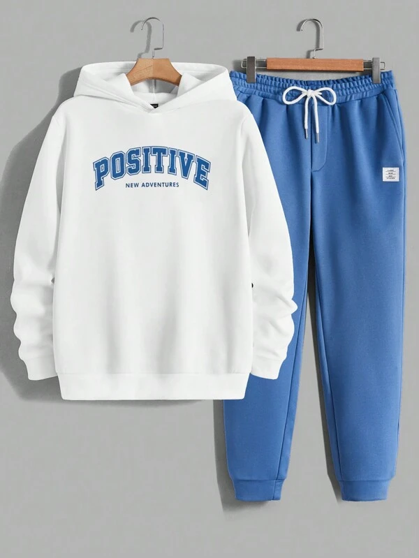 Manfinity Sporsity Men Letter Graphic Hoodie & Drawstring Waist Sweatpants