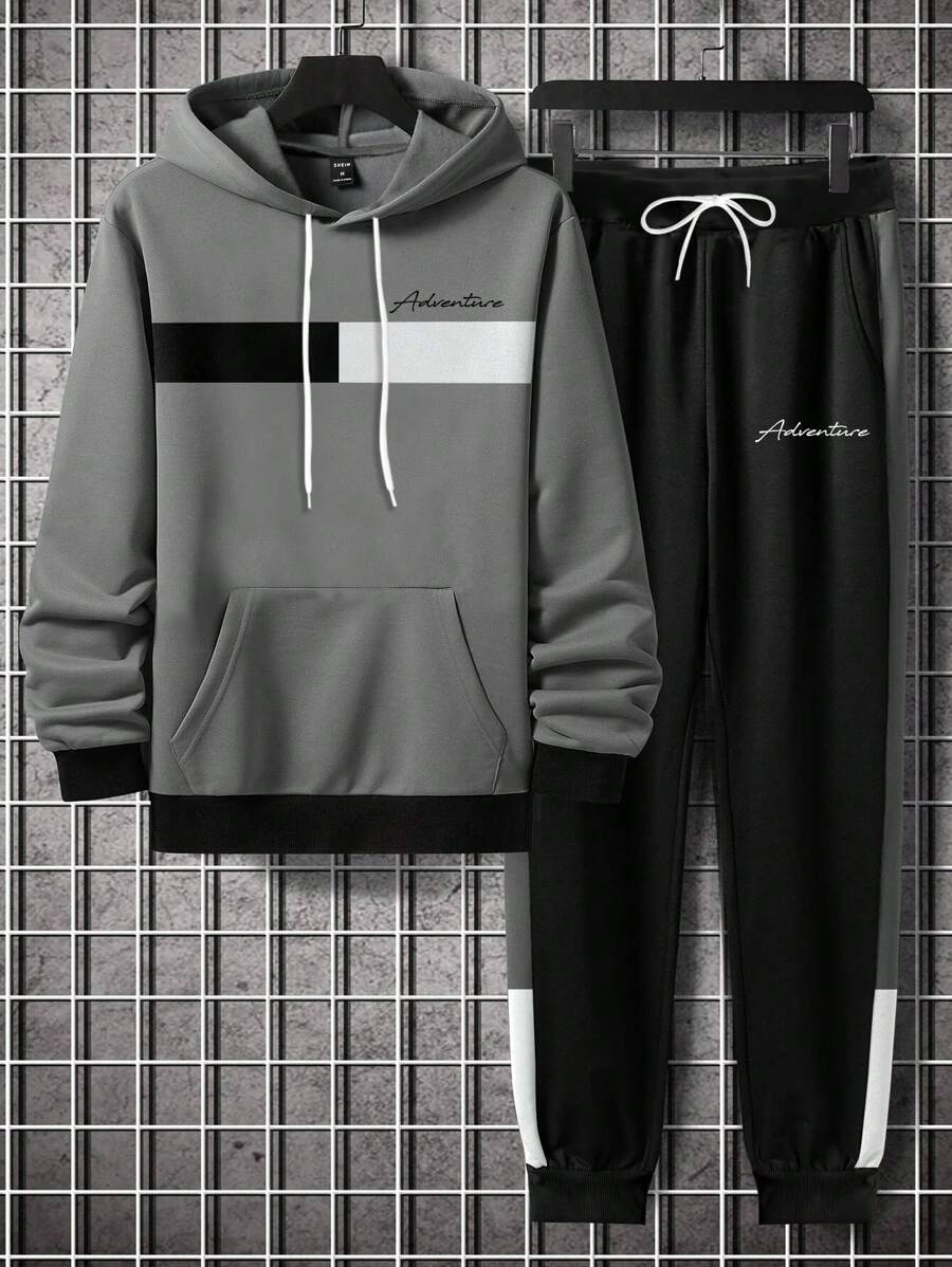 Manfinity Men Letter Graphic Kangaroo Pocket Drawstring Hoodie & Sweatpants