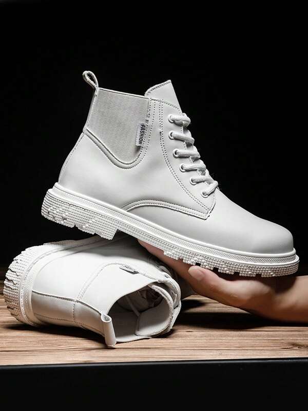 Men Letter Graphic Lace-up Front Chelsea Boots, Fashion Outdoor Ankle Boots