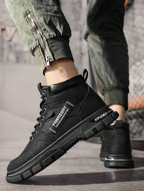 Men Letter Graphic Lace-up Front Combat Boots, Fashion Outdoor Boots