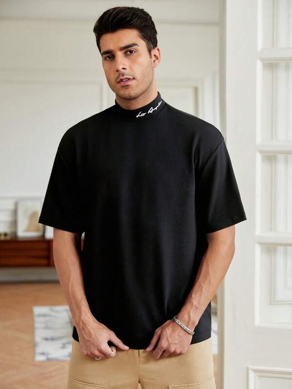 Manfinity Hypemode Men Letter Graphic Mock Neck Tee