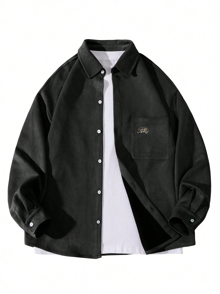 Men Letter Graphic Pocket Front Drop Shoulder Shirt Without Tee